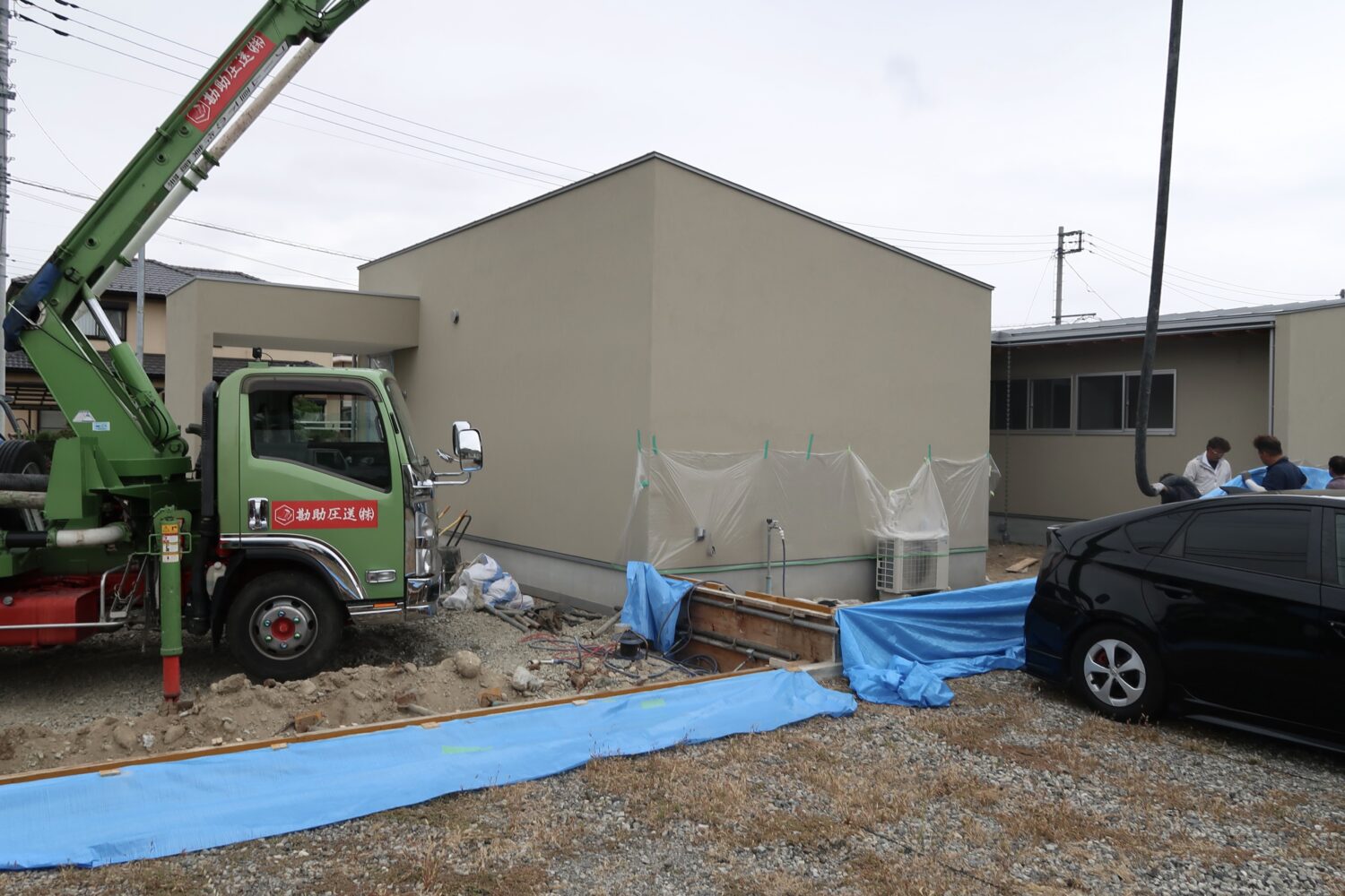 こちらは建て替えで、皆様の思いが詰まった実家を解体して新築させて頂いています。
